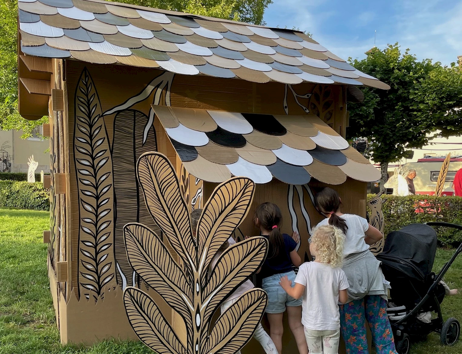Ce projet participatif a commencé en février 2024. Après 4 résidences, la forêt en carton dont le point central est la Chahute, a pris forme lors du festival.