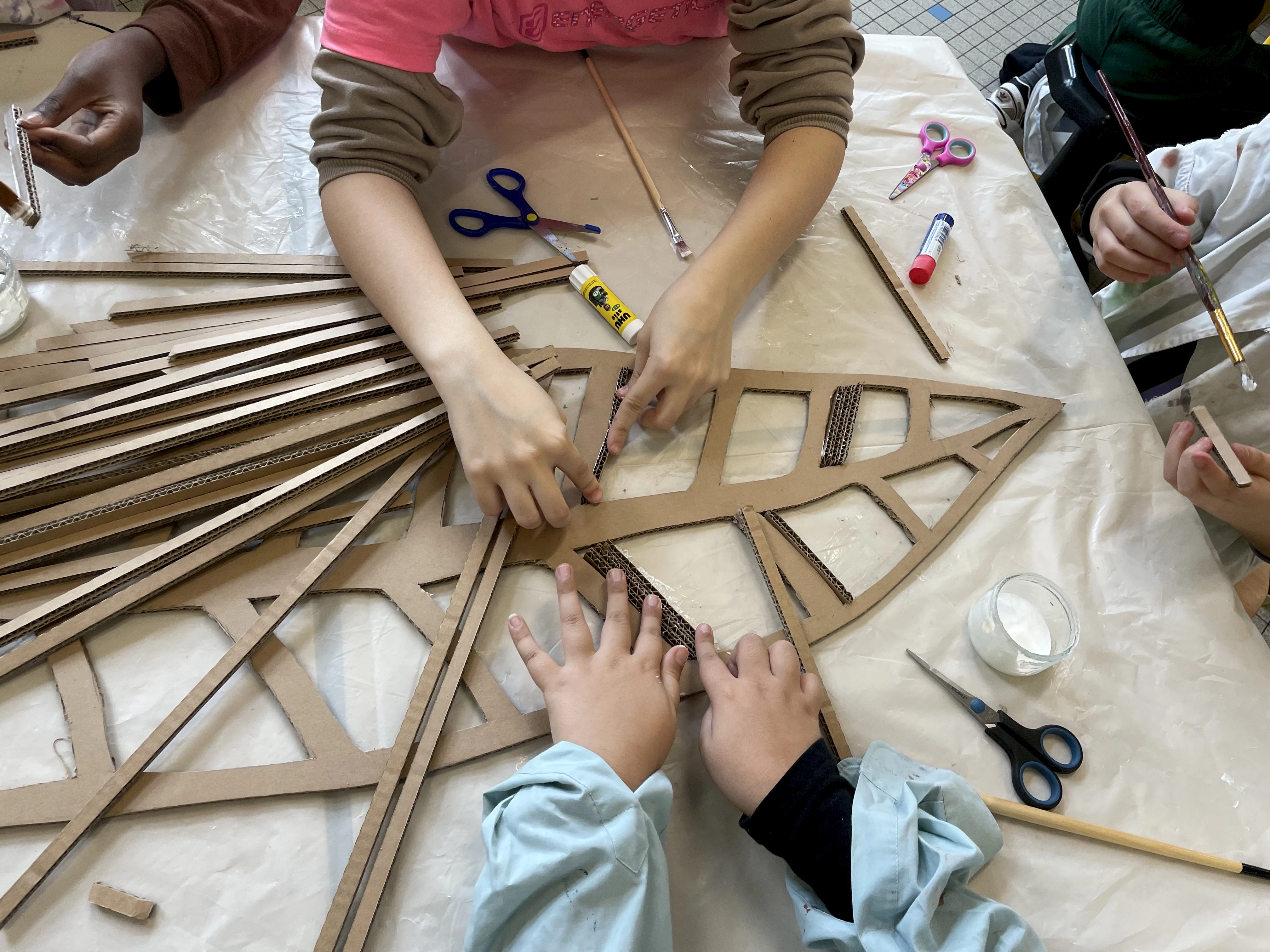 Lors de ces résidences, des ateliers pour les enfants ont été organisés (scolaires et hors scolaire) créant ainsi le peuple de l’intérieur de la chahute.