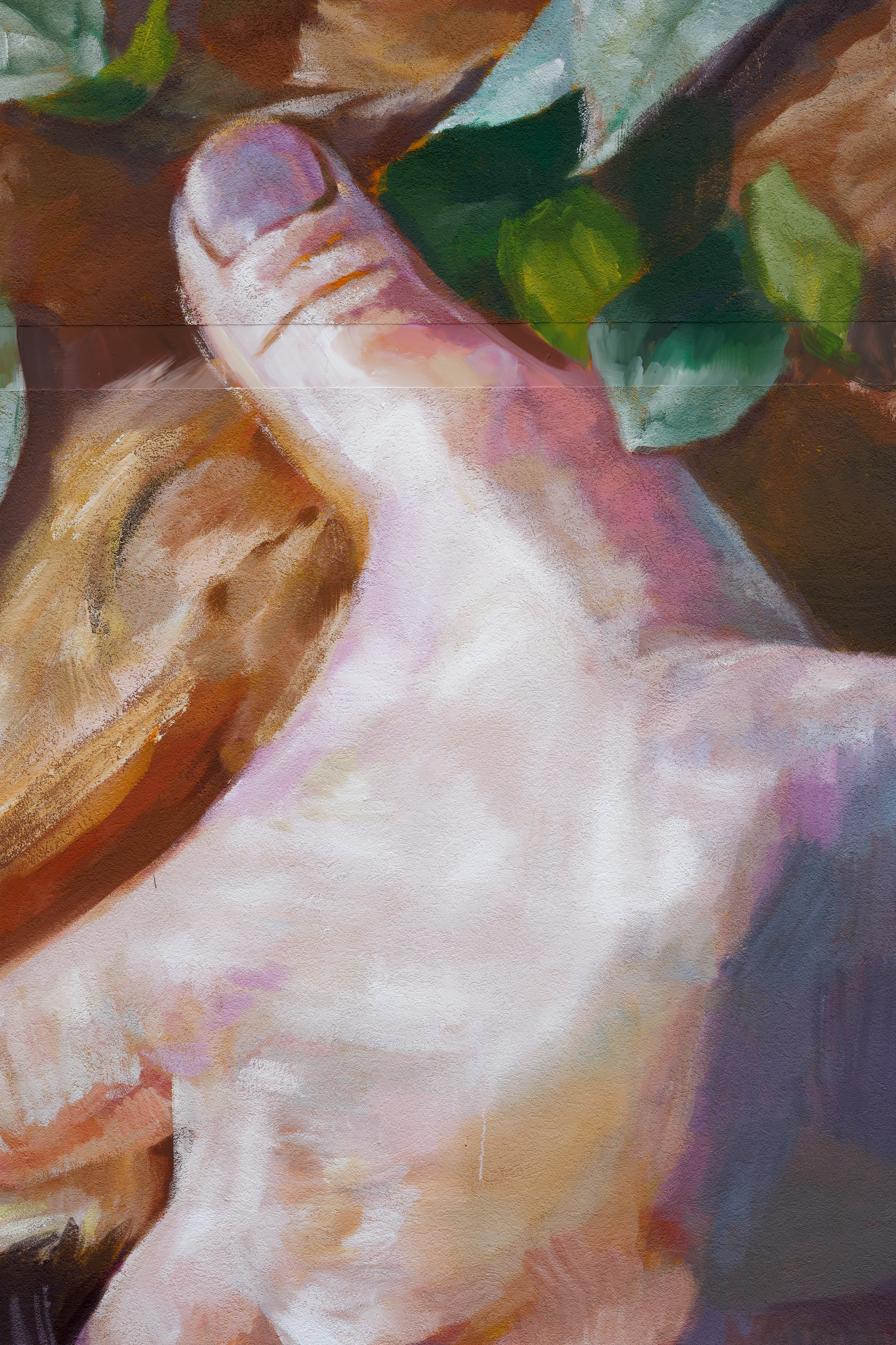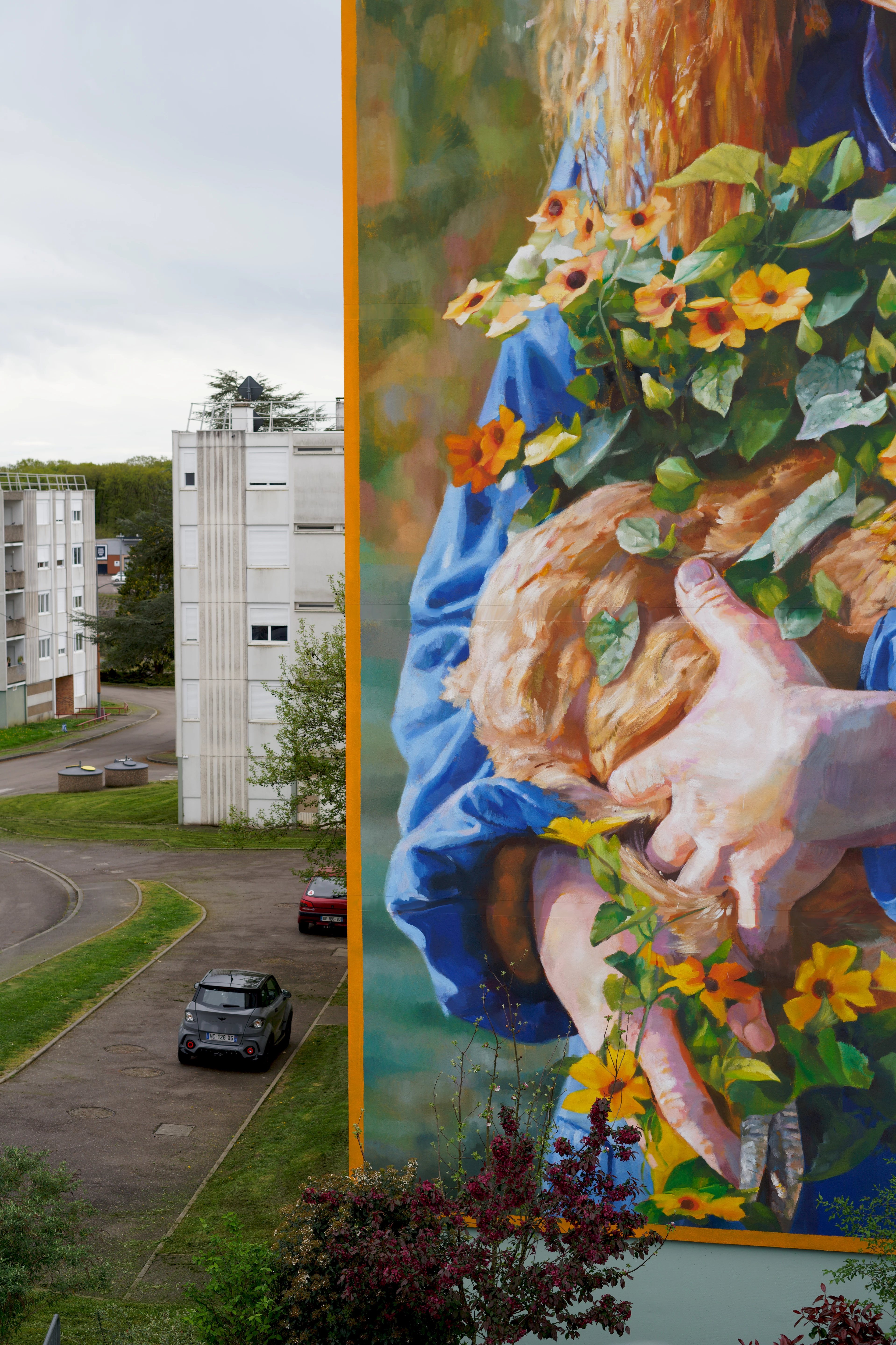 Née en 1989, Rouge Hartley est diplômée de l’école des Beaux-arts de Bordeaux. Au sein de la scène murale française, elle se démarque par un style figuratif où se mêle académisme et modernité. L’artiste met en scène ses sujets dans des poses photographiques, presque cinématographiques, qui servent de base à ses peintures. Sur mur comme sur toile, son travail est expressif et poétique, émettant une émotion qui interpelle le spectateur.