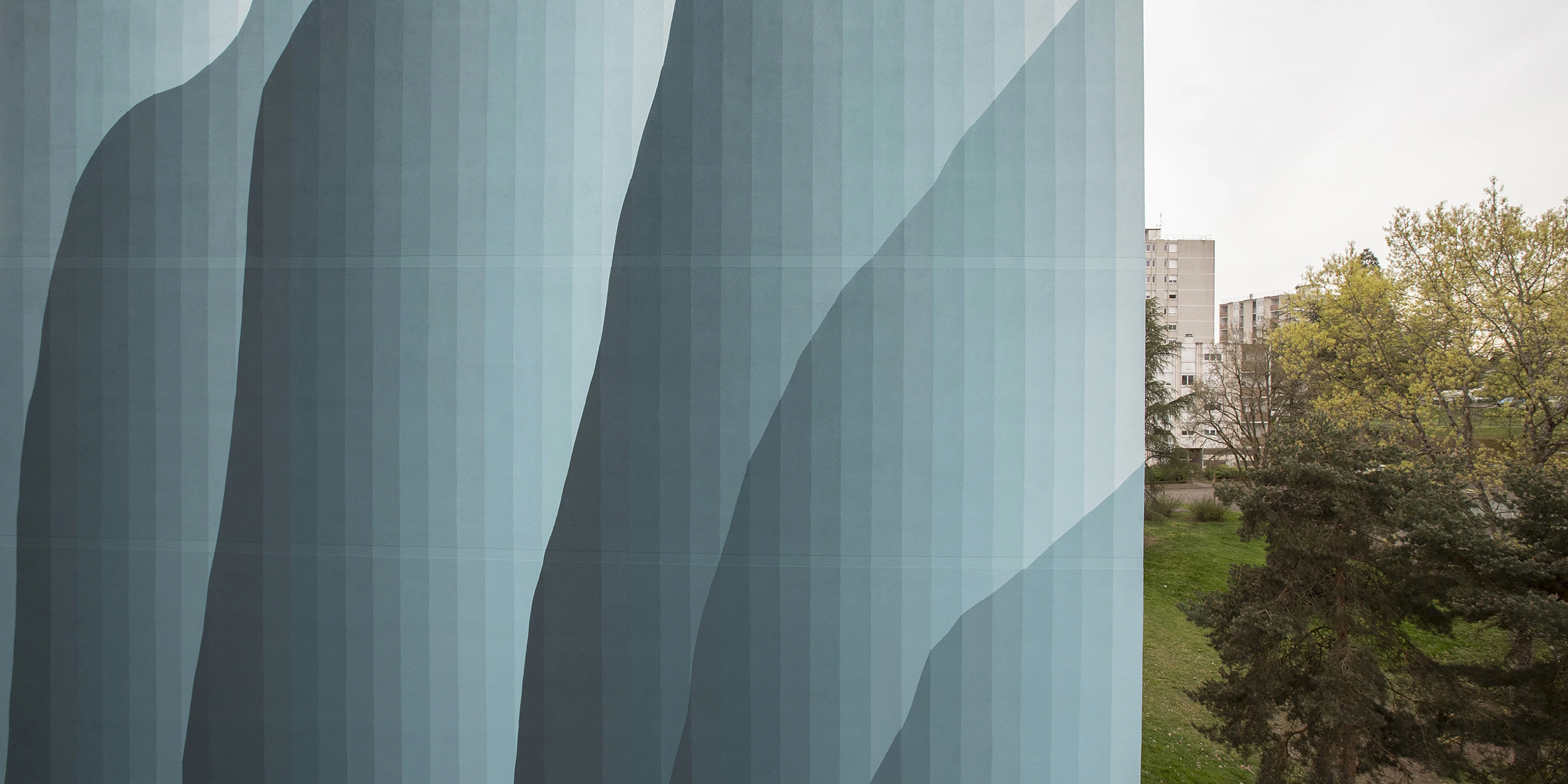Roberto Ciredz crée un effet de trompe-l'œil étonnant, qui se fond dans le paysage arboré du quartier. L’artiste décline la couleur vert, du foncé au très pâle. Interpelant le spectateur, les dégradés produisent des effets de volumes saisissants, qui semblent alléger cette façade massive. À travers ces formes, Roberto aborde le sujet de la nature vivante : la croissance des végétaux, le mouvement des vagues ou des nuages. Les lignes verticales, elles, évoquent la main de l’Homme, droite et scientifique. L’ensemble est harmonieux, comme une relation idéale entre l’humain et l’environnement.