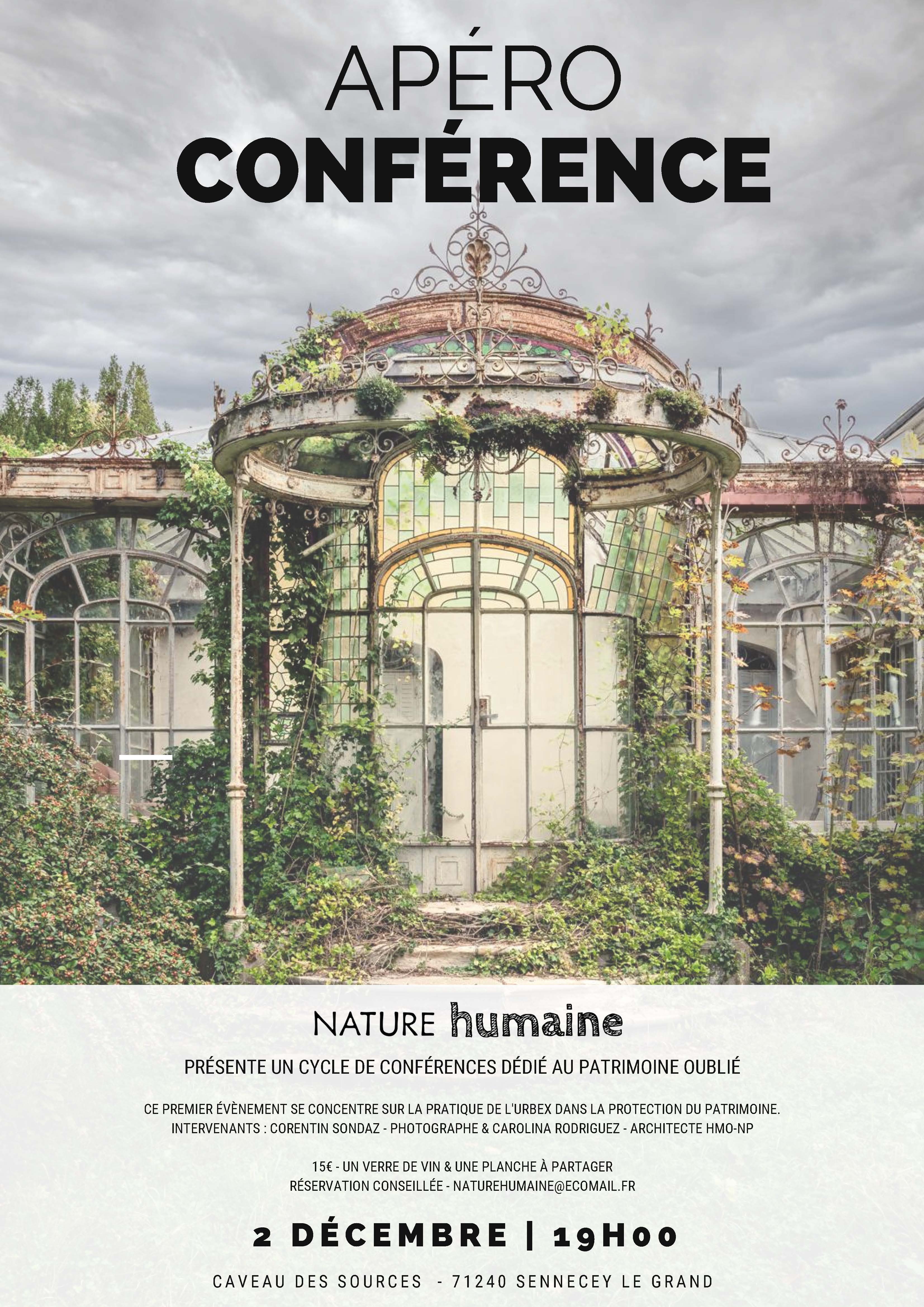 Le premier apéro-conférence a eu lieu en novembre 2021. Il abordait le patrimoine oublié ou l'importance de l'urbex dans la protection du patrimoine.
